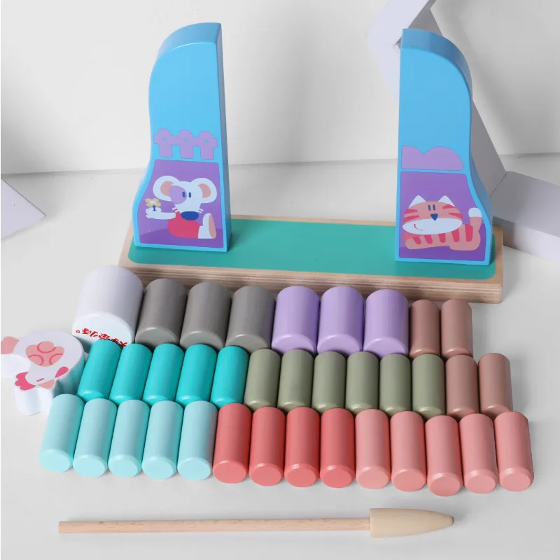 Children's building blocks pile high game hen push wall pumping wooden blocks toys parent-child int