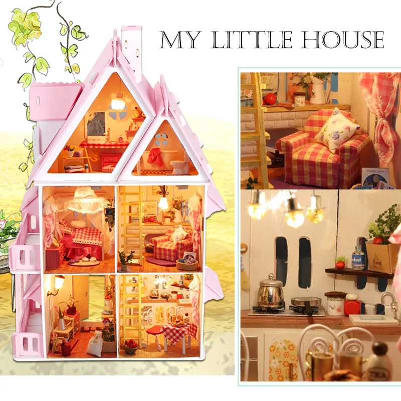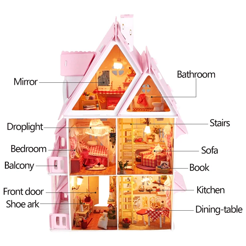 HIGH QUALITY Sunshine Alice DIY Villa Doll House Wooden 3D Lights Miniature Dollhouse Furniture Puzzle Kit Toys