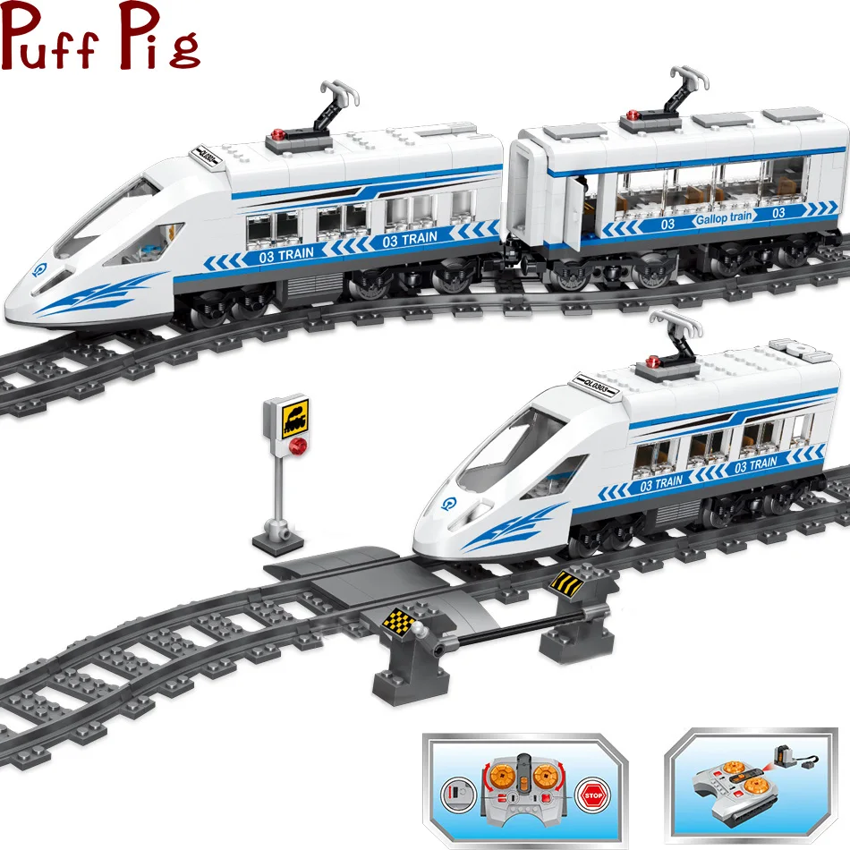 HOT Sale 583PCS RC Track Rail Trains Building Block Technic Legoing High-speed Rail DIY Bricks City Remote C