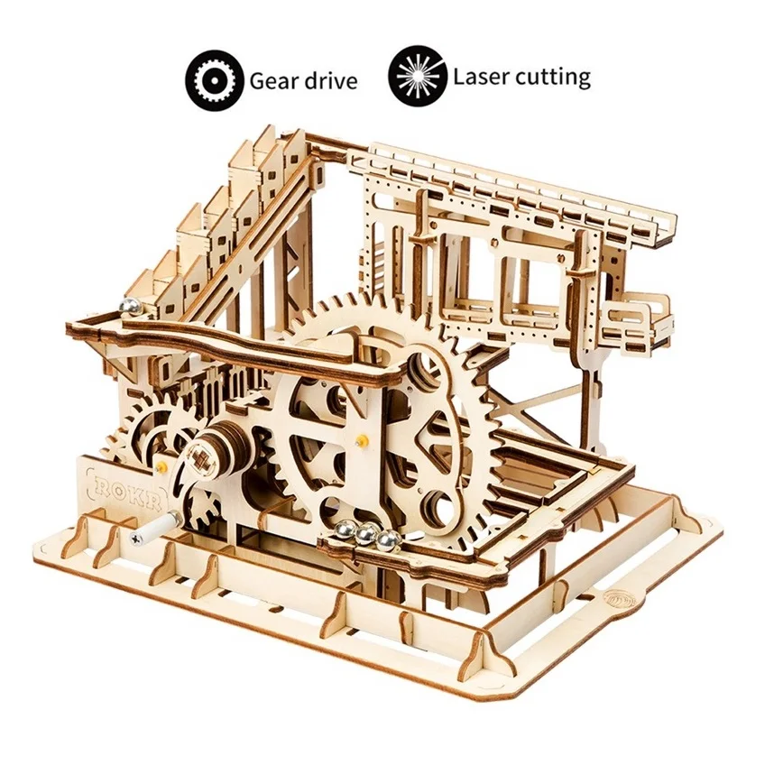 BEST Robotime DIY Cog Coaster Magic Gear Drive Ball Crash Game Wooden Model Building Kits Toy Gift for C