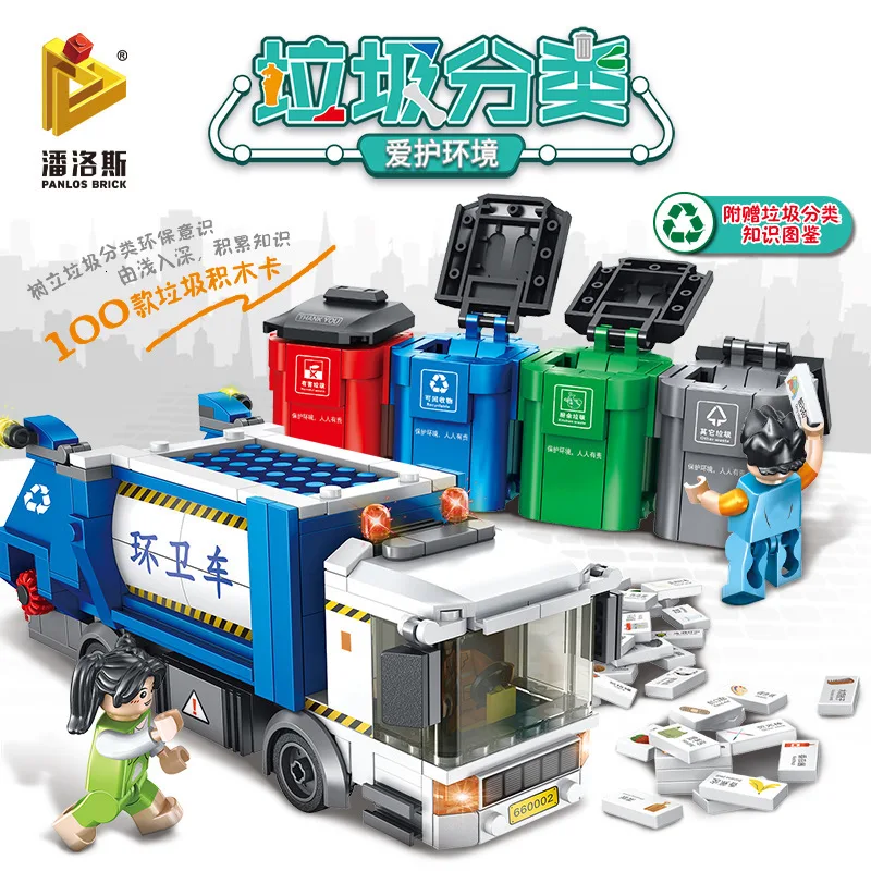 Review Top PANLOS 660002 Ideas Series Garbage Classification Sanitation Truck Building Block Bricks Educationa