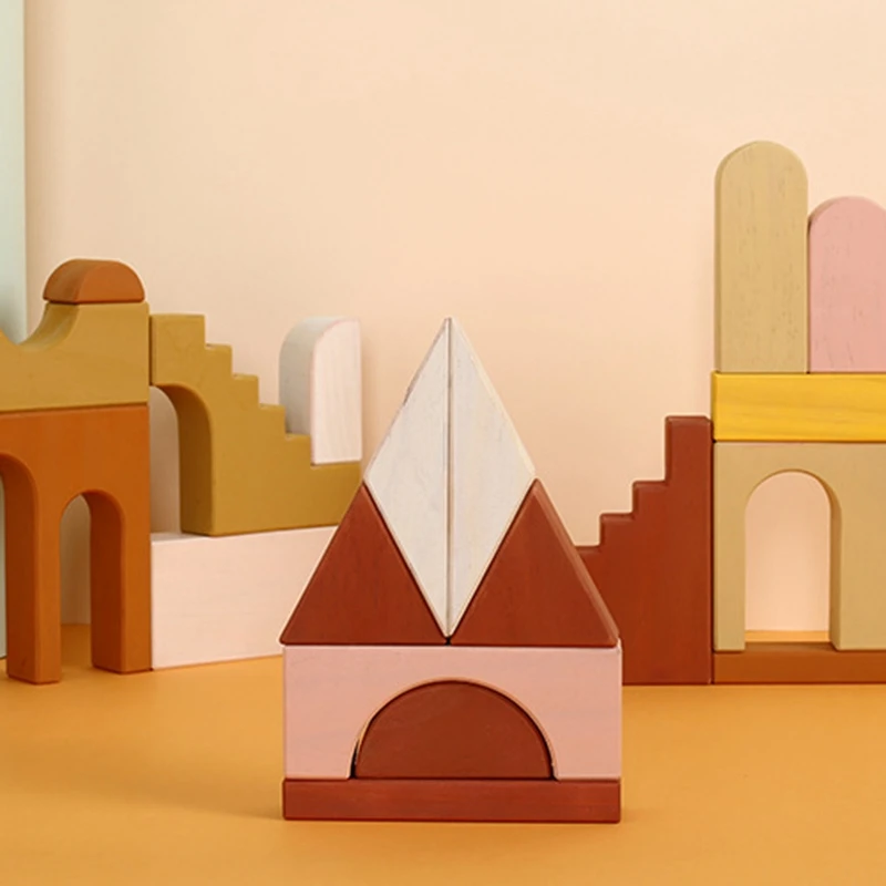 Rainbow Blocks Wooden Toys for Kids Forest Trees Castle Building Blocks Educational Girls Boys Birt