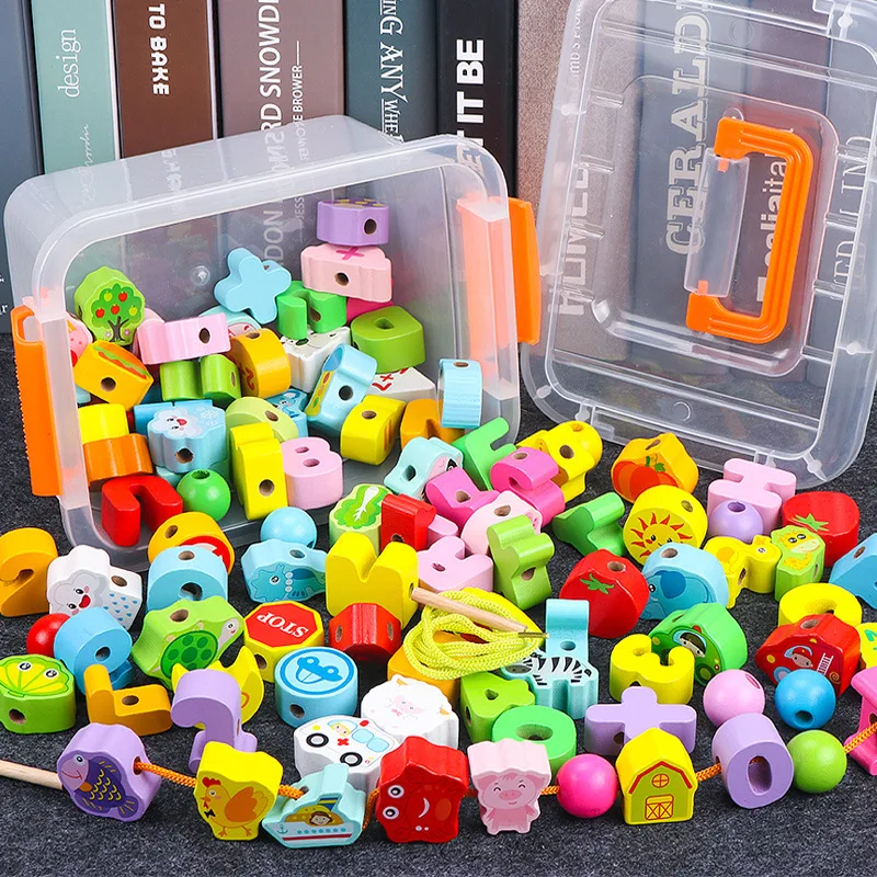 BEST QUALITY Solid Wood Baby Toy Educational Force Beaded Bracelet Sub-Infants Children Threading Building Block